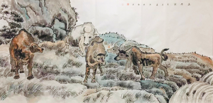 “新年即将到来,明年就是我国的辛丑年——农历牛年,我用国画作品《五牛图》预祝我们的国家兴旺发达,中华民族繁荣昌盛。”张振福介绍说。